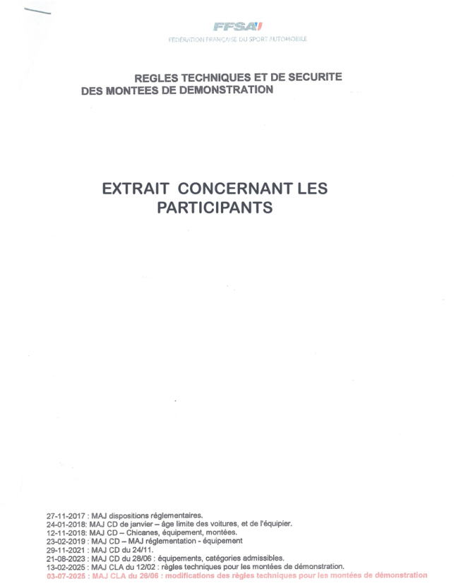 EXTRAIT DU REGLEMENT FFSA CONCERNANT LES MONTEES HISTORIQUES